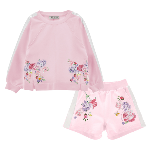 Monnalisa Girls Pink Flower Shorts Set