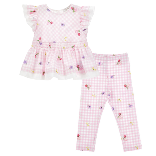 Monnalisa Girls Pink Gingham Leggings Set