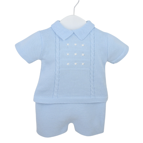 Pex Baby Blue Knit Spot Shorts Set
