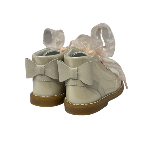 Andanines Beige Glitter Bow Patent Boots